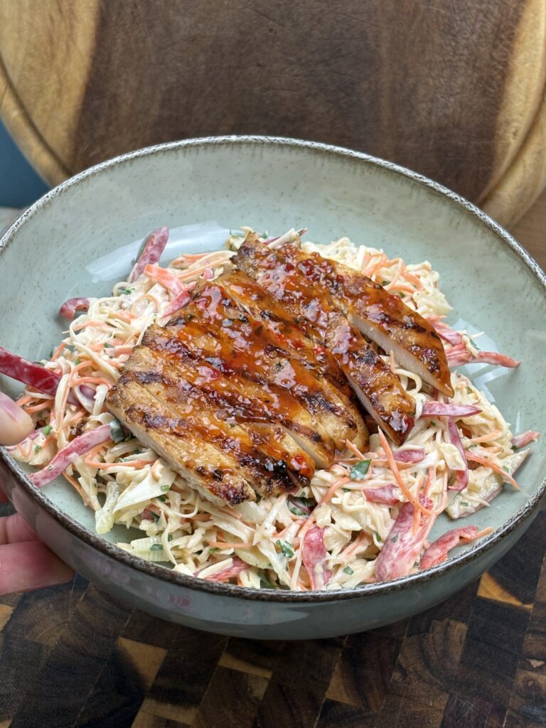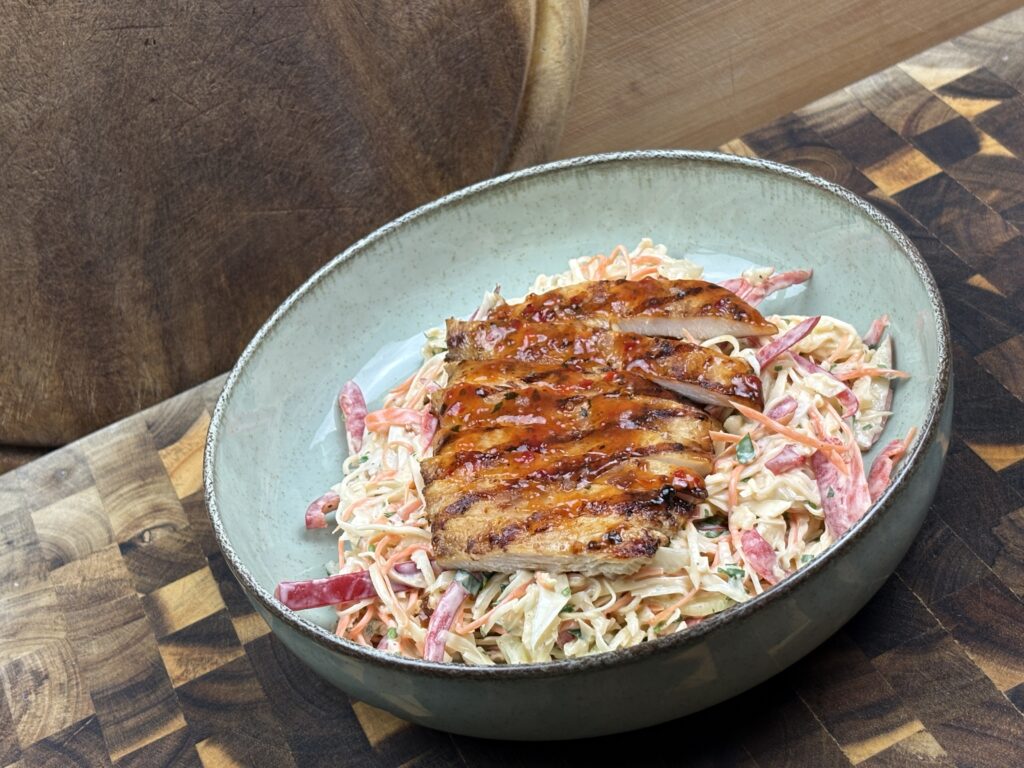 - Începe prin a pregăti pieptul de pui. Îl poți marina cu puțină sare, piper și ulei de susan pentru un gust mai intens. Apoi, gătește-l pe grătar până devine frumos rumen.
