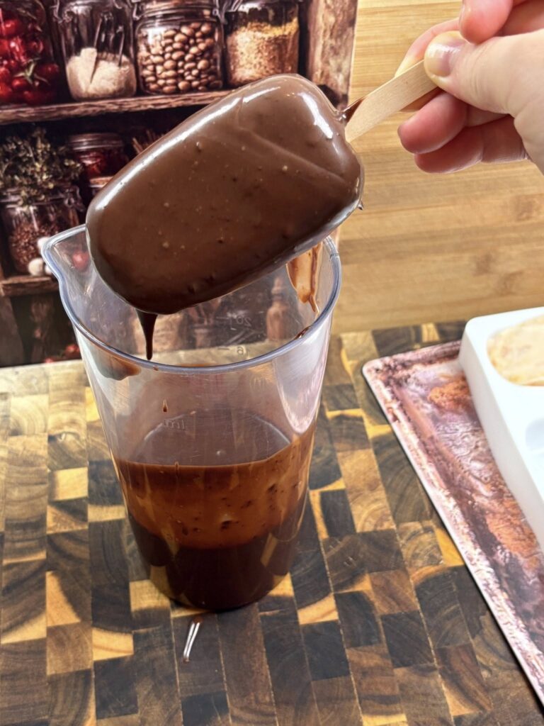 Înghețata pe băț de caise cu glazură de ciocolată